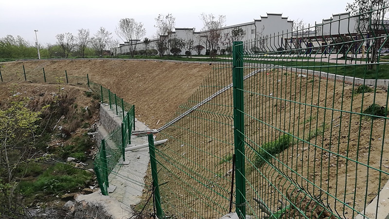 桃型柱隔離柵由三角折彎網(wǎng)片與桃形立柱組成,與其他金屬護(hù)欄網(wǎng)不同的是,桃型柱隔離柵在安裝時,并非是在安裝完所有立柱后,再安裝網(wǎng)片的,而是先安裝第一根立柱,緊接著安裝第一張網(wǎng)片,再安裝第二根立柱,再掛網(wǎng)片,依此類推。之所以桃形柱防護(hù)網(wǎng)采用這樣的方式安裝,是因為它在連接時,是不需要用螺絲配件來組裝的,而是直接將網(wǎng)片掛在立柱的凹槽內(nèi),立柱所帶的凹槽是根據(jù)網(wǎng)片的尺寸來訂做的,所以,稍微有點誤差就無法安裝。在斜坡上安裝時,要先測量好斜坡的坡度,再制定安裝方案,最后敲定防護(hù)網(wǎng)尺寸。如果是高低不平的地面,安裝起來則比較麻煩,甚至是無法安裝。