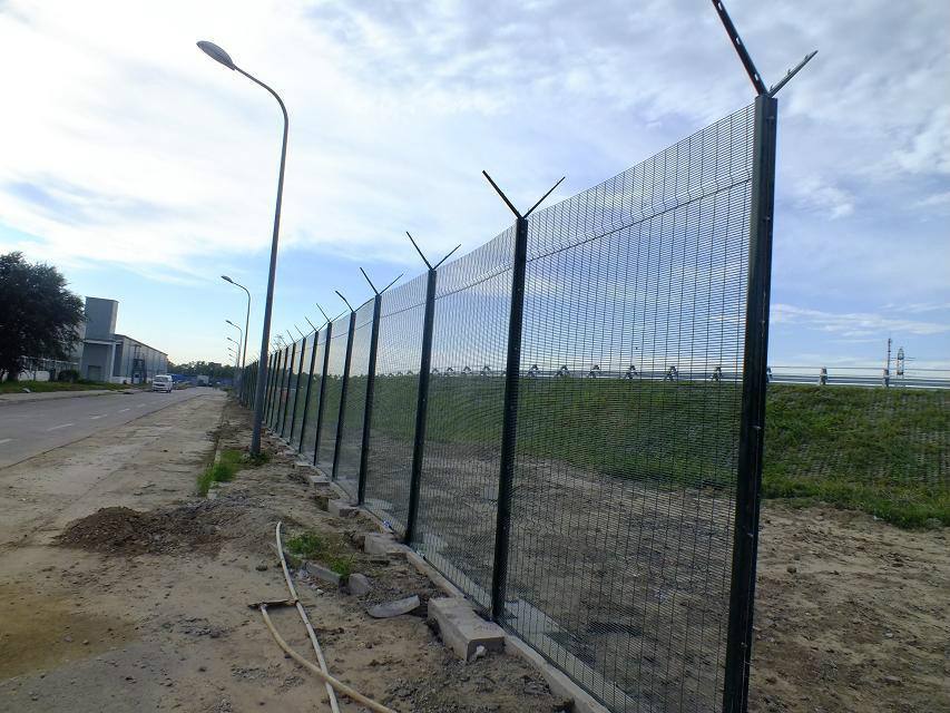 1.可采用混凝土預(yù)埋式,需在地面預(yù)留 400*400*500的預(yù)埋坑,放上立柱調(diào)整好水平及直線后,在坑澆鑄混凝土,待凝固后安裝隔離網(wǎng)片即可