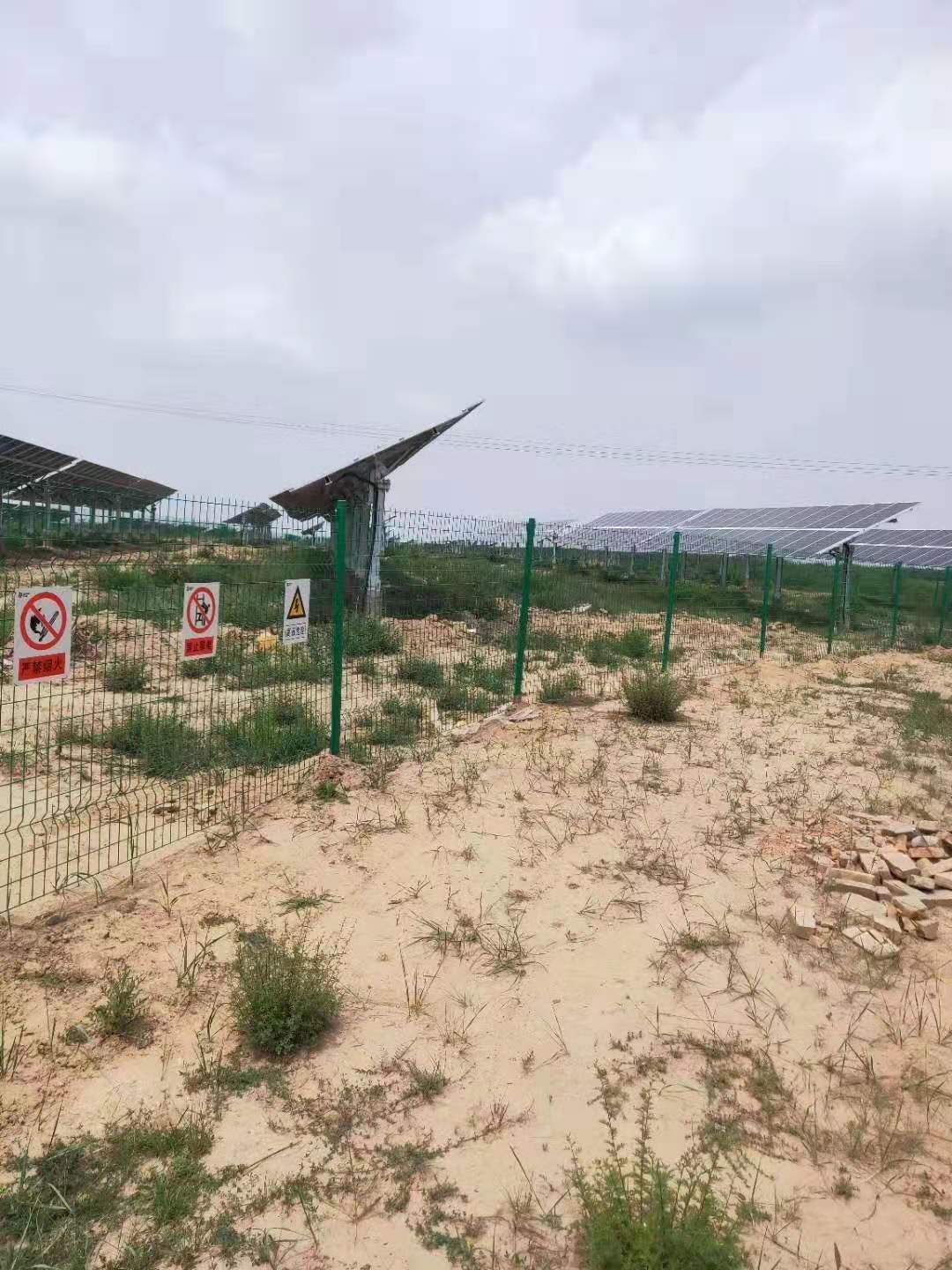 隨著近些年我國光伏產(chǎn)業(yè)的蓬勃發(fā)展,光伏電站鐵絲網(wǎng)隔離柵的應(yīng)用市場也得到了擴(kuò)展,光伏電站鐵絲隔離網(wǎng)大面積應(yīng)用在光伏電站廠區(qū)中做防護(hù)隔離圍墻使用,我們公司生產(chǎn)供貨過的光伏電站防護(hù)圍欄有哪些呢?巴彥淖爾力諾光伏電站隔離柵、額濟(jì)納旗慶華光伏電站隔離網(wǎng)、河南唐河光伏電站隔離柵、青海地區(qū)光伏電站鐵絲網(wǎng)等。