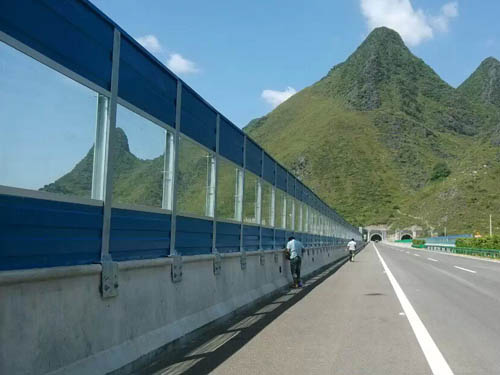 透明板聲屏障的特點(diǎn)是框架由經(jīng)過(guò)氧化處理的鋁合金制作,且具有重量輕、強(qiáng)度高、不腐蝕、美觀等特點(diǎn)。夾膠玻璃是透明型隔音墻的主要選材,具有強(qiáng)的防護(hù)性能和良好的透明性及不磨性,透明板聲屏障主要是城市風(fēng)景區(qū)或者住宅區(qū)用于隔絕臨近的城市道路交通噪聲的措施,與周邊的樹(shù)木等景觀形成一道特別的風(fēng)景。